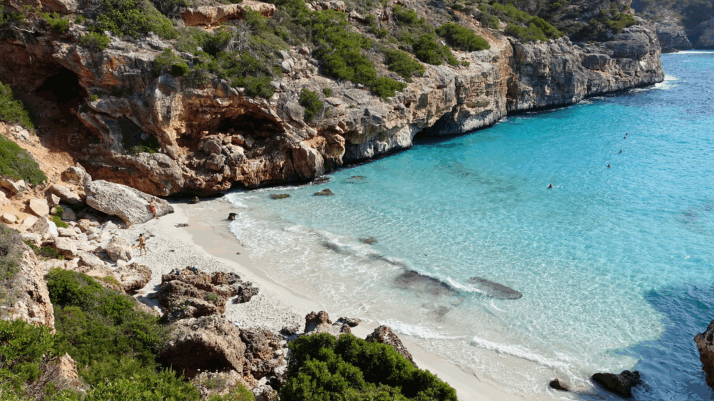 Caló des Moro is tiny, beautiful, and the kind of place that feels hidden because it is tucked between cliffs. It has become more known in recent years, but you can still catch it in a quiet mood if you arrive early and avoid peak summer weekends. The cove is small enough that it fills up fast, so the “hidden” part is really about timing and effort. The water is clear, and the surrounding rock creates a sheltered swimming spot when conditions are calm. You will want good footwear because the access can be uneven and the area is not designed like a resort beach. If you go with the right mindset, early, respectful, and prepared, it still feels like one of Mallorca’s most special corners.