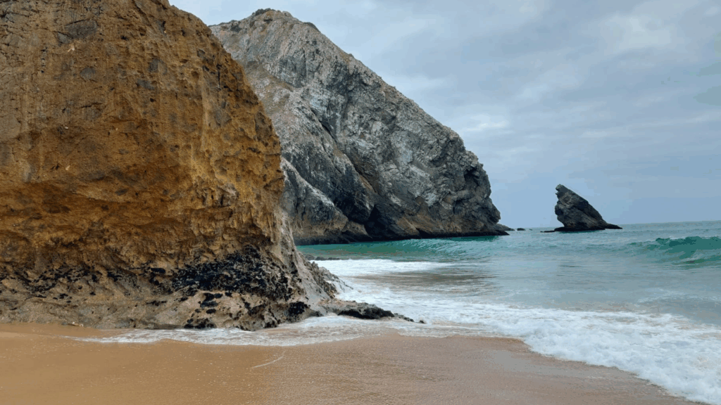Praia da Ursa is a wild beach near Cabo da Roca that feels remote because the access is steep and rugged. It is not a place you casually stroll to in flip flops, which is why it stays calmer than many nearby beaches. The rock formations are dramatic, the sand feels untouched, and the whole setting has a “nature wins” vibe. You should only go if you are comfortable with a challenging descent and know you have to climb back up, especially in heat. The reward is a beach day that feels quiet and raw, with fewer people and more space. If you want an adventurous hidden beach experience, this is one of Portugal’s best.