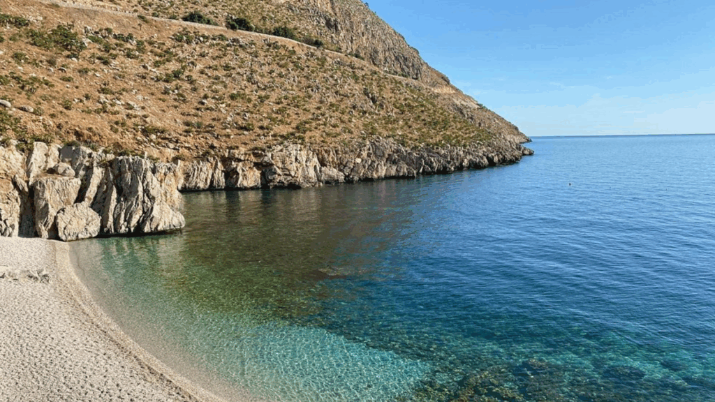 This cove sits inside the Zingaro Nature Reserve, which keeps the coastline protected and the overall experience more peaceful. You have to walk in, so it naturally stays quieter than beaches you can pull up to by car. The water is crystal clear, and the rocky edges make it great for snorkeling if conditions are calm. Because it is within a reserve, you should bring proper shoes, plenty of water, and a mindset that fits a nature day, not a resort day. Go early to enjoy the calm and avoid the hottest part of the day on the walk back. Sicily can get busy in summer, but this kind of protected beach escape still feels like a quieter version of the island.