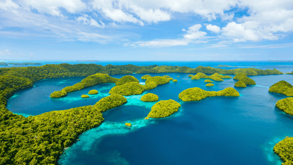 Palau is known for clear water and incredible marine life, and the Rock Islands region creates sheltered lagoon environments that stay swimmable year round. The water is often calm in protected areas, which makes it great for swimming and snorkeling. This is a destination where you can keep things active, but still enjoy relaxed floating sessions in warm water between adventures. Many travelers come for diving, but even non divers can have an amazing time swimming in calm lagoons and spotting fish in shallow water. The scenery adds to the experience, with green islands rising straight out of bright blue water. For specifics, plan your lagoon swim days around a guided tour, because access is often best by boat and guides know the calmest, clearest spots for the day.