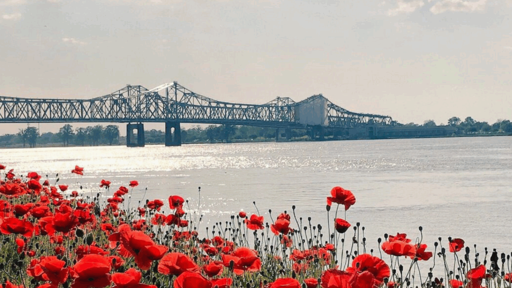 St. Charles keeps the Missouri River right at your feet. Frontier Park spreads out with shady lawns, levee paths, and benches facing the water. Historic Main Street sits a block away with brick storefronts, bakeries, and handmade goods. The Katy Trail runs near town for an easy out and back pedal. Weekends bring markets and music that fit a slow afternoon by the riverbank.