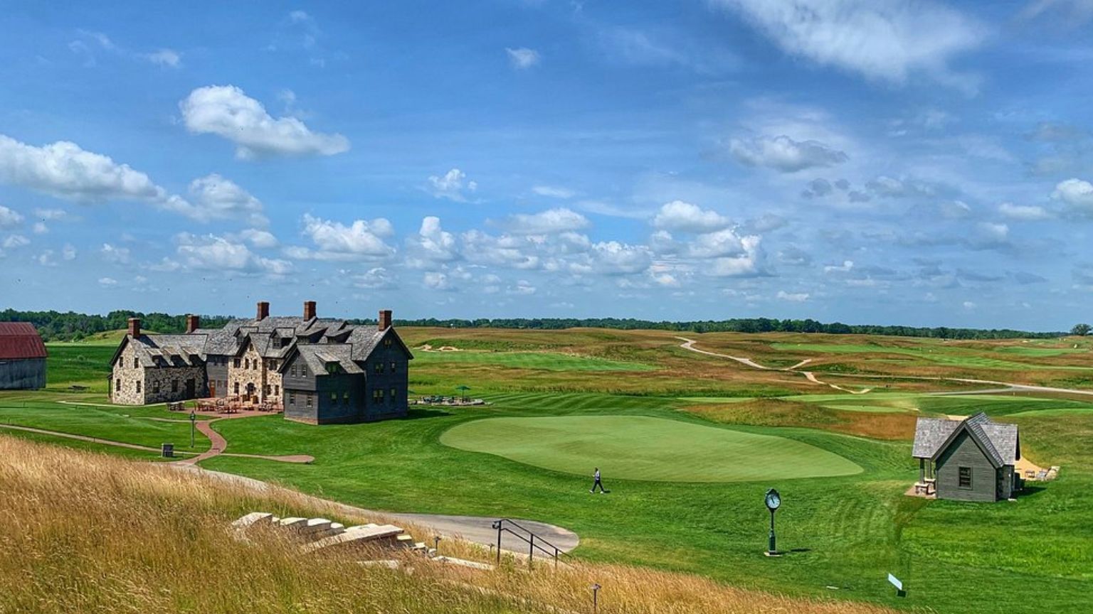 Erin Hills, a public course in Wisconsin’s Kettle Moraine, offers a sprawling links-style layout that hosted the 2017 U.S. Open. Its fescue-lined fairways and massive greens, like the par-5 18th, test distance and precision amid rolling hills. Public tee times are available through the resort, with rates varying by season, so book early for summer slots. The course’s open terrain and strong winds mimic Scottish links, creating a thrilling challenge. Stay at the on-site lodge for rustic charm and easy course access. Nearby Hartford offers local diners serving hearty Midwestern meals. The course’s natural beauty, with wildflowers and kettle lakes, enchants players. Visit in June for ideal conditions and long daylight. Pair your trip with a brewery tour in Milwaukee. Erin Hills delivers a bucket-list round with wide-open drama.