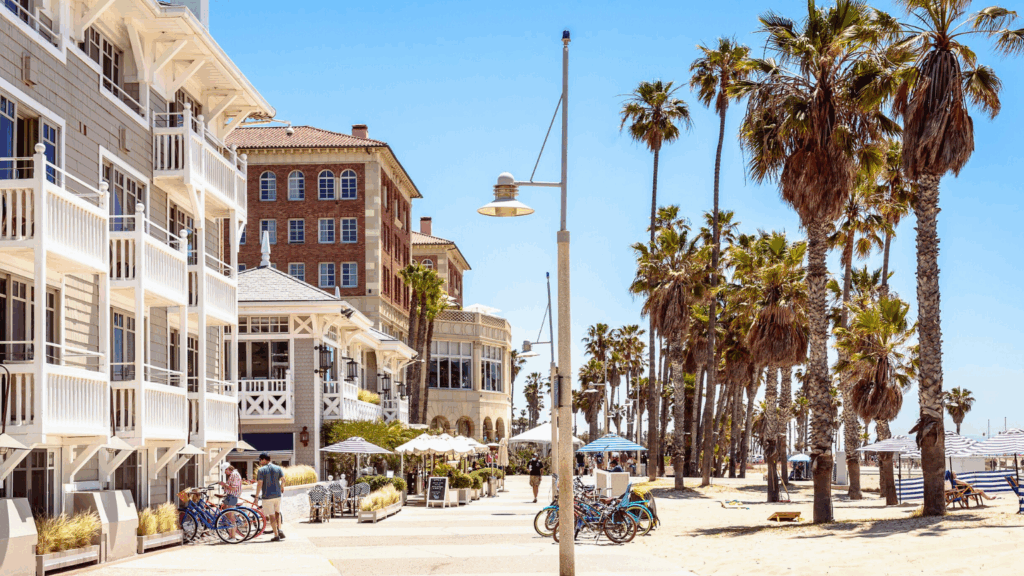 With its eclectic boardwalk and endless stretches of sandy beaches, Venice Beach offers a bohemian lifestyle like no other. It’s a place where skateboarding culture, street art, and beachfront living merge into one vibrant community. Residents enjoy the luxury of morning surf sessions and sunset yoga classes, all within walking distance of their homes. The neighborhood’s diverse culinary scene, from food trucks to upscale dining, caters to all tastes. Venice Beach embodies the quintessential California dream, offering a laid-back yet lively waterfront lifestyle.