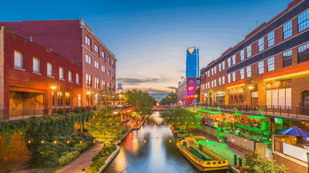 Oklahoma City spreads out with easy driving and new districts. Nichols Hills and Mesta Park offer leafy streets near downtown. The Scissortail Park area brings concerts, food trucks, and play spaces. Employers span energy, aviation, and health care. The airport is efficient and centrally located. Community projects focus on practical improvements and quality of life.