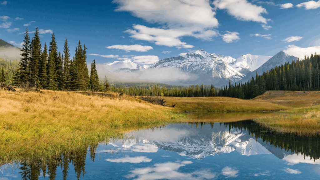 In late September to early October, the Canadian Rockies offer a unique autumn experience with the golden glow of larch trees. Unlike most conifers, larches shed their needles, turning a brilliant gold before they do. Locations like Larch Valley near Lake Louise become especially popular, with trails offering spectacular views of the golden trees against the backdrop of rugged mountains. The contrast with the evergreens and the first dustings of snow create a stunning visual palette. Early booking is advised as this short season draws in crowds eager to hike amongst the gold.